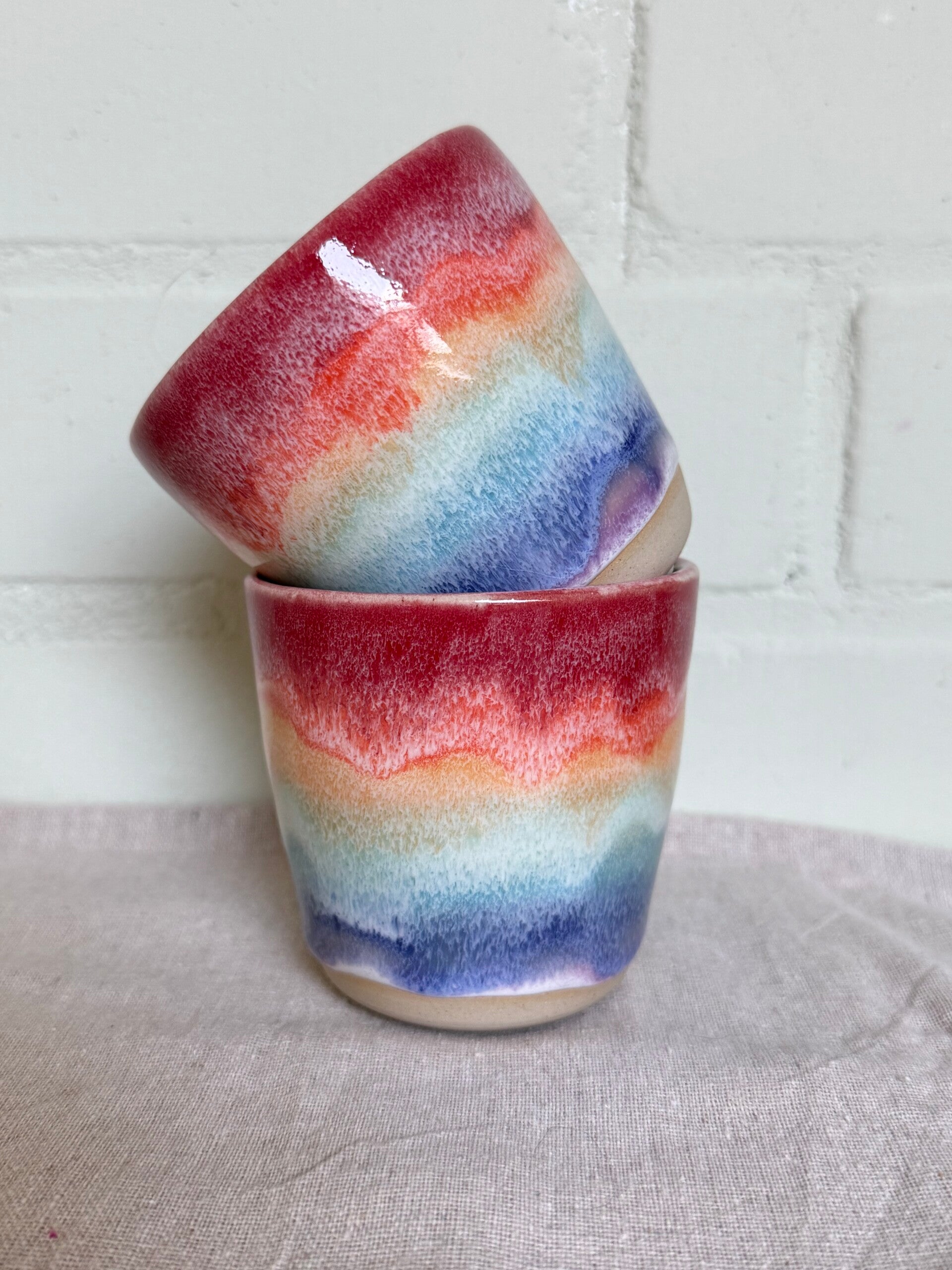 Laat de Zon Schijnen: Jouw Vrolijke Regenboog Beker (Handgemaakt Keramiek)