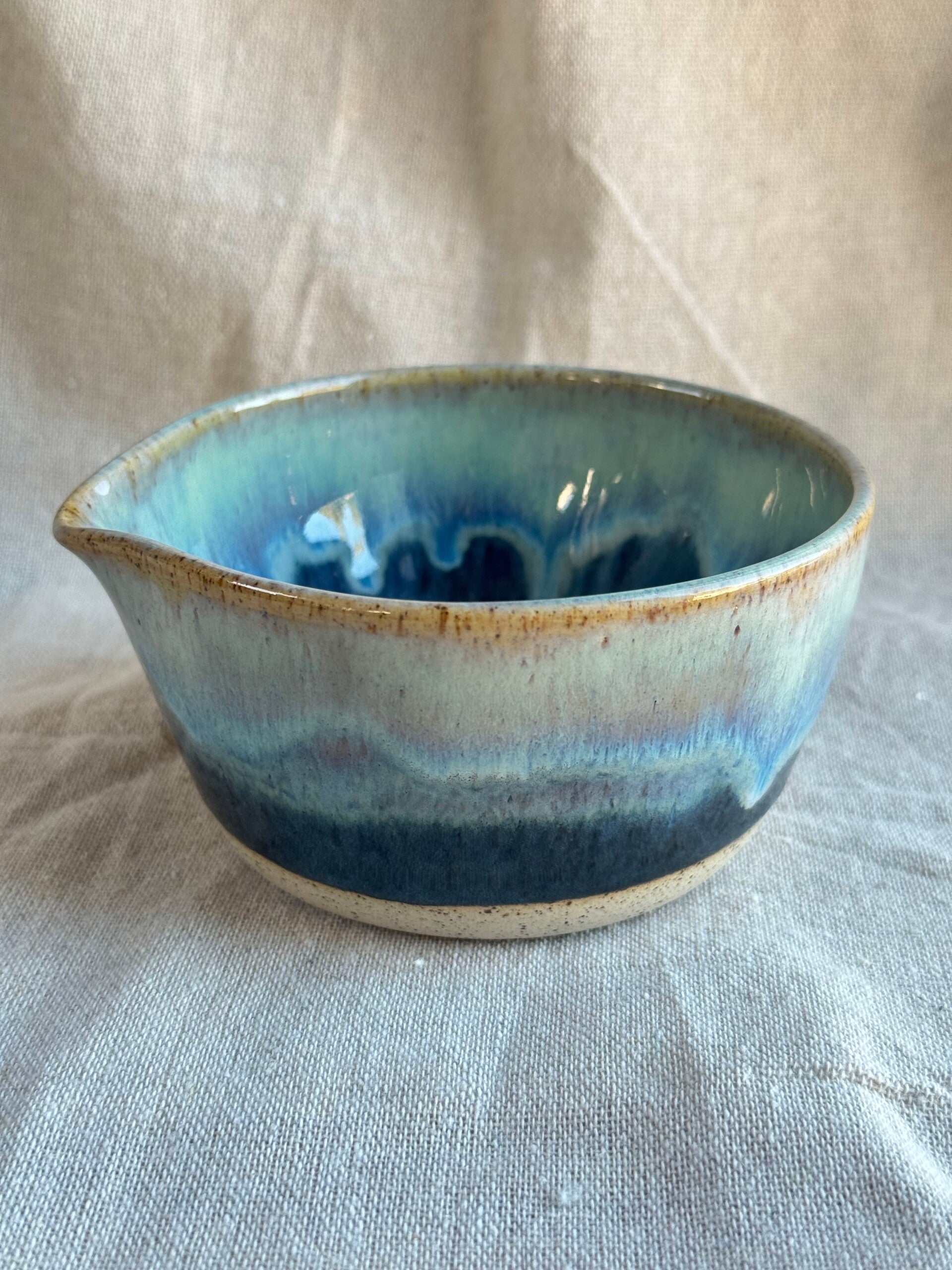 Verrijk je dagelijkse momenten van rust met deze adembenemende, handgemaakte matcha kom. Elk stuk is een klein kunstwerk met een spectaculair oceaanblauw druipglazuur.