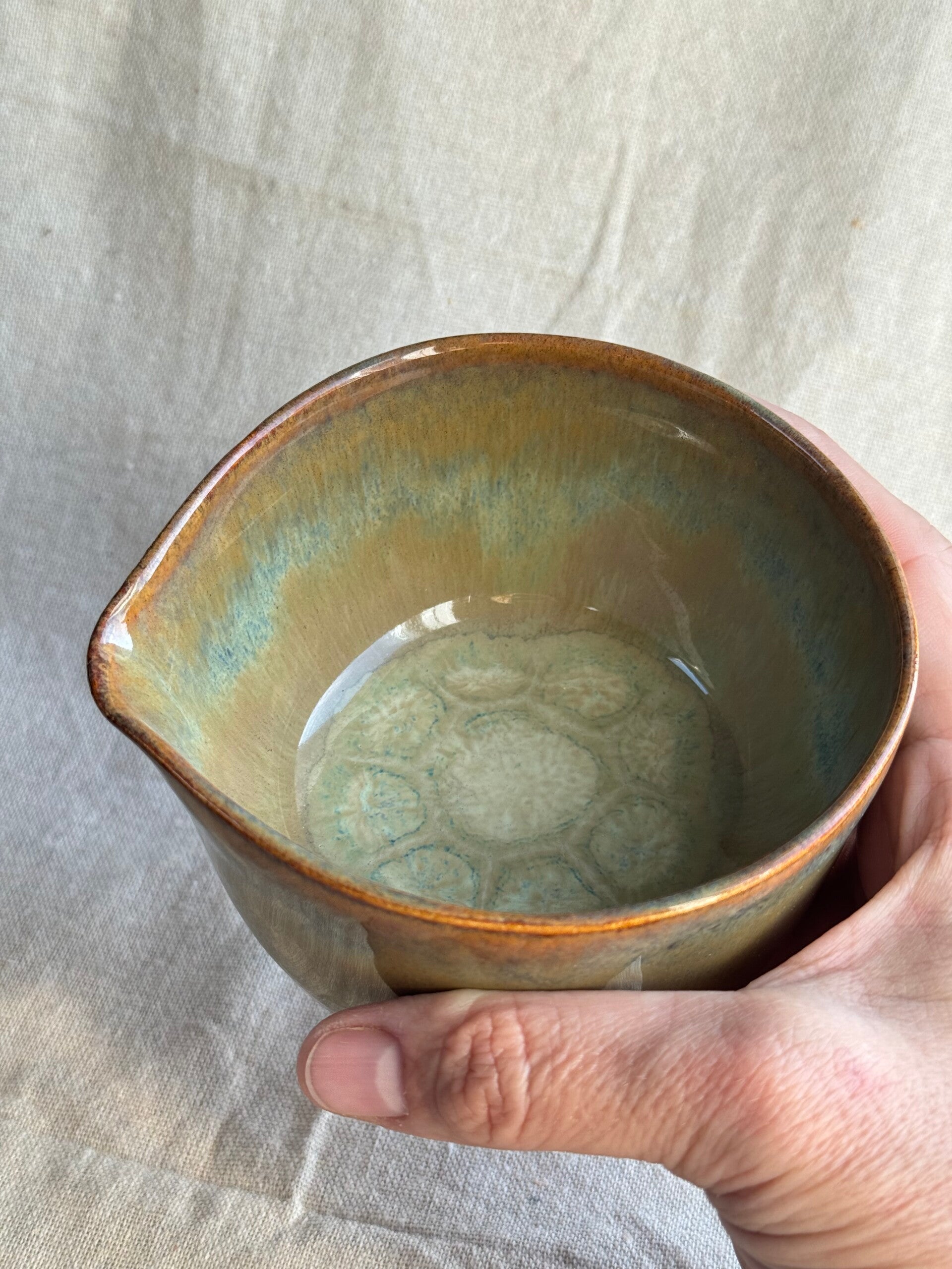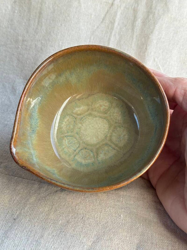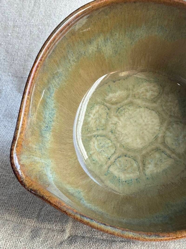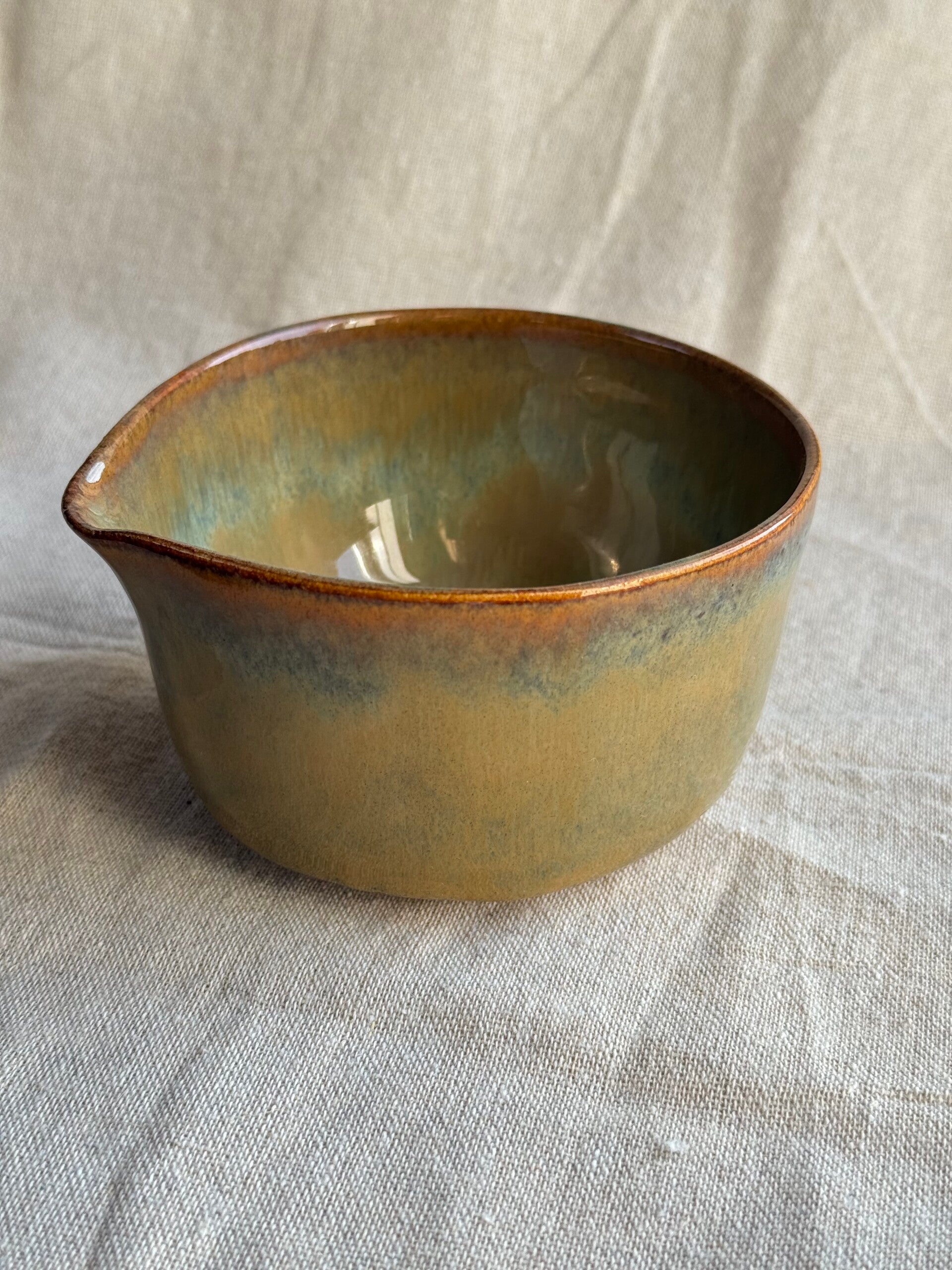 Een handgemaakte matcha bowl speciaal ontworpen voor het kloppen van matcha. Voorzien van een glanzende, aardse glazuur met een unieke textuur op de bodem. Inhoud: 300 ml.